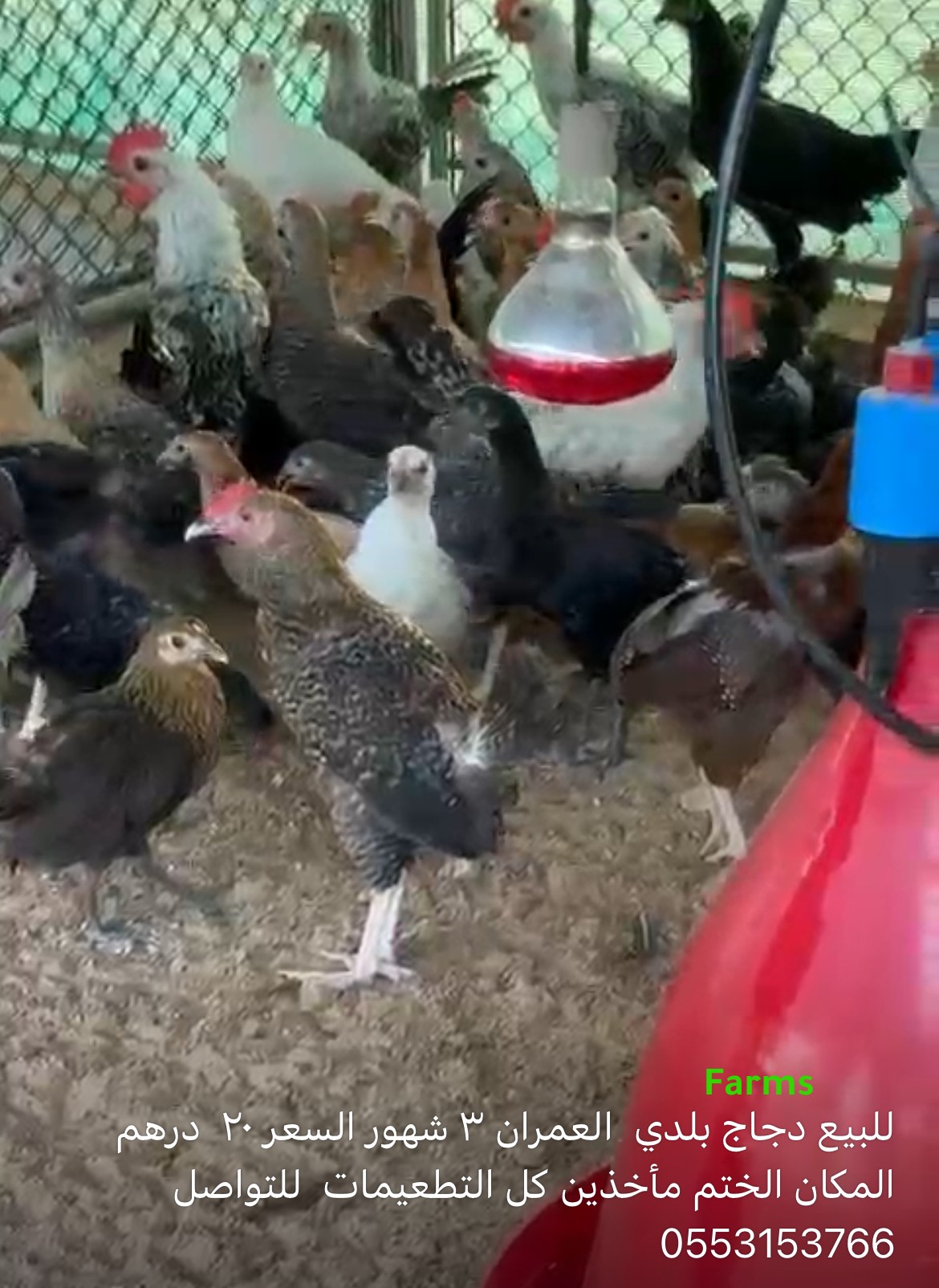 للبيع دجاج بلدي  العمران ٣ شهور السعر ٢٠  درهم المكان الختم مأخذين كل التطعيمات  للتواصل 0553153766
