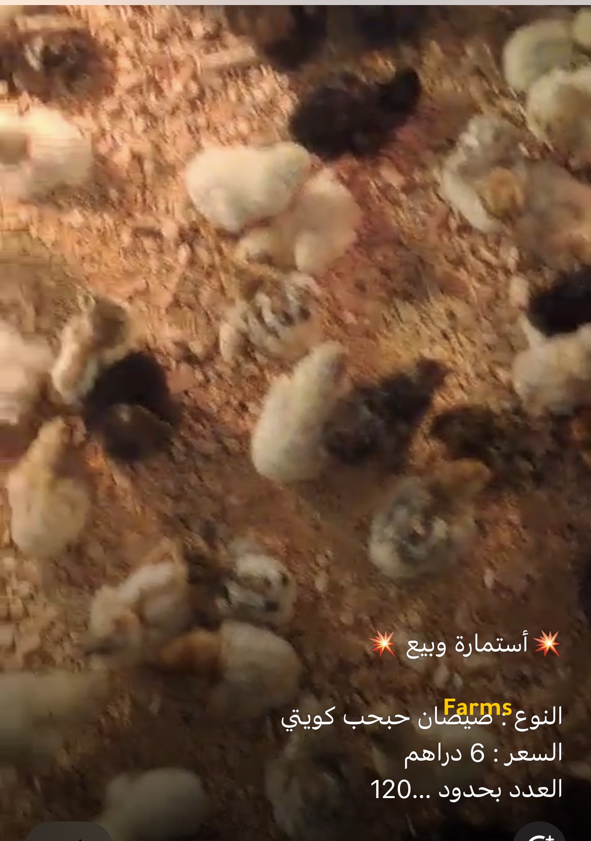 💥أستمارة وبيع 💥 النوع : صيصان حبحب كويتي السعر : 6 دراهم العدد بحدود 120 العمر: يومين الحالة :الحمد لله ممتازة الموقع : راس الخيمة ملاحظات رقم التواصل :0509775269